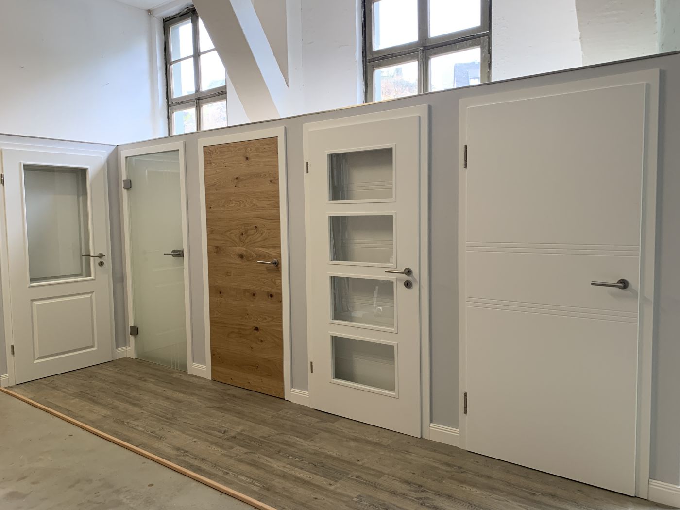 Wählen Sie zwischen den zahlreichen Angeboten an Türen – ob Schiebetüren, Glastüren, sägeraue Türen, Innentüren oder auch Eingangstüren. In unserer hauseigenen Türenausstellung können Sie sich gerne inspirieren lassen und die Türen ausprobieren. Bei uns finden Sie eine große Auswahl an: